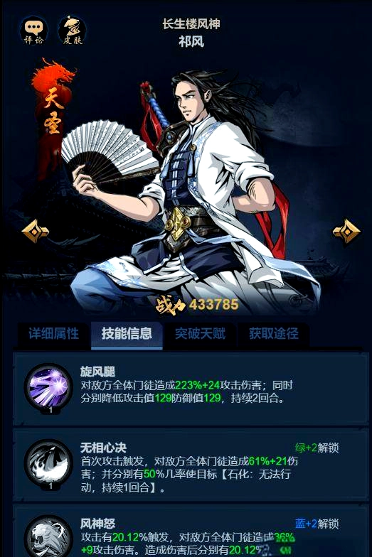 祁风堪称第一天圣里的顶尖控制型角色,他那出色的控场能力绝对不能小觑。不管玩家有没有氪金,只要肯花心思去培养,祁风就能发挥出超凡的实力。他的技能能让每一次普通攻击都附带群体石化效果,再搭配上云高寒的技能,能把对手牢牢控住动弹不得。不仅如此,祁风还有降低敌人攻击和防御的技能,而且当队伍里队友数量不多的时候,他的伤害输出还会提升,刚好能填补队伍在伤害方面的缺口。