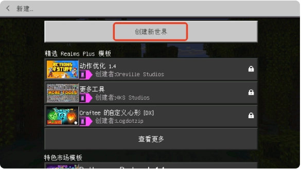 5、然后继续点击“新建”和“创建新世界”,并在设置里开启“实验性游戏”功能。