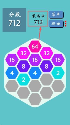 2.规划合成路径:观察数字布局,预判合并顺序,利用六边形的多方向特性规划最佳滑动策略。