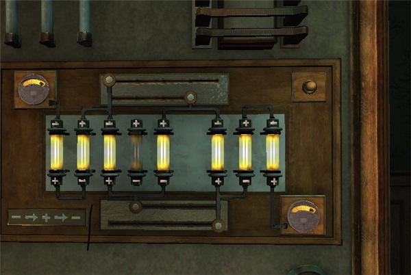 查看完毕信件后,需要双击台子侧面靠近,然后带上目镜观察,会发现台子侧面有三个谜题,而台子侧面的转筒内有对应的答案,玩家需要将正确的答案转到正面,解答对全部三道谜题,才能开启下一机关,三个谜题及其答案分别是: