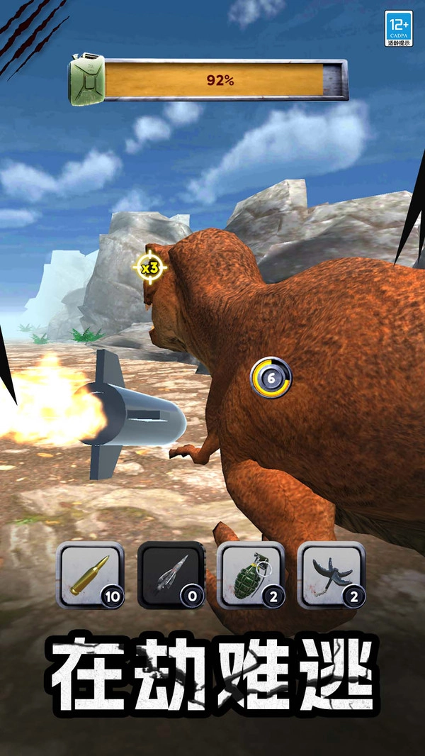 3、玩家需仔细规划行动,每种弹药均有使用次数限制,要借助策略能力精准分配弹药,防止燃料耗尽而无法发起攻击;此外还有多重任务可供解锁,能轻松获取恐龙、猩猩与狼人等角色,自由进行挑战。