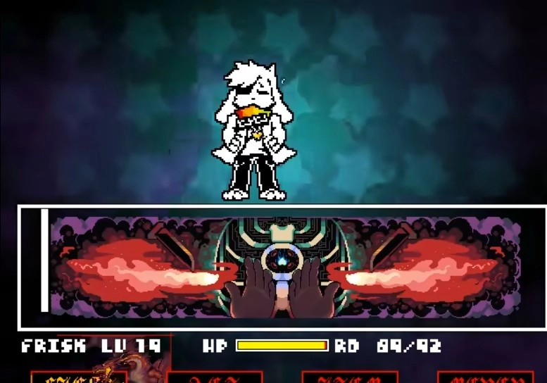 第一阶段:Chara的攻击手段涵盖近战与远程两种类型,玩家需留意进行躲避并适时展开反击。