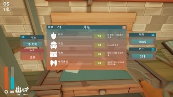 5、售卖矿石能够获取钞票,这些钞票可用于升级铲子、增加背包容量,还能恢复生命值与电池电量。