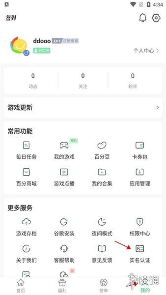 1、进入百分网游戏盒平台后,点击“我的”选项。