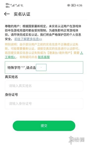 3、把相关个人信息填写完毕后,点击“提交”按钮就能完成实名认证。