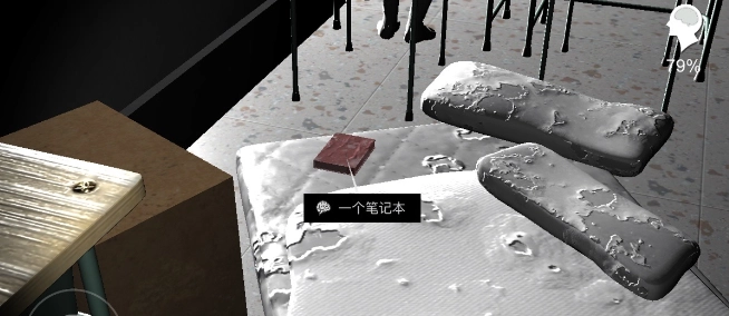 1、“一个笔记本”这条线索藏在2楼废弃教室的地铺那儿,得点击枕头将它移开,就能找到了。