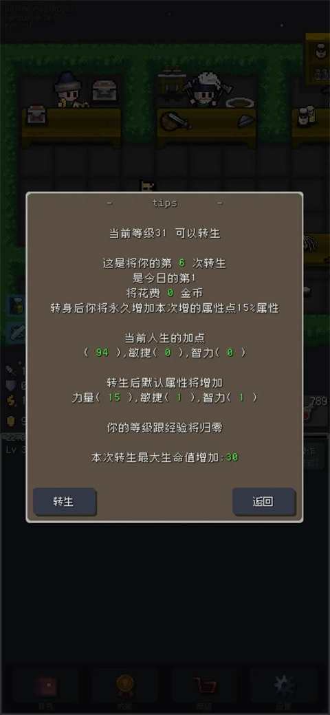 等级达到30级及以上就能前往转生店进行转生操作。转生只会清除当前的经验等级,同时会把本转的加点属性按15%的比例转化为永久属性——大概是每6点加点属性对应转化为1点永久属性。桃子是这么理解的,大家也可以参考这个说法。