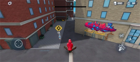2、操作方式采用摇杆设计,屏幕左侧的摇杆用于控制角色移动,右侧则分布着攻击、发射蜘蛛丝、跳跃等功能键位。