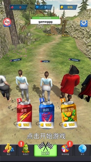1、进入游戏后点击屏幕即可开启游戏,玩家能在比赛开始前花费金币对不同属性进行升级。