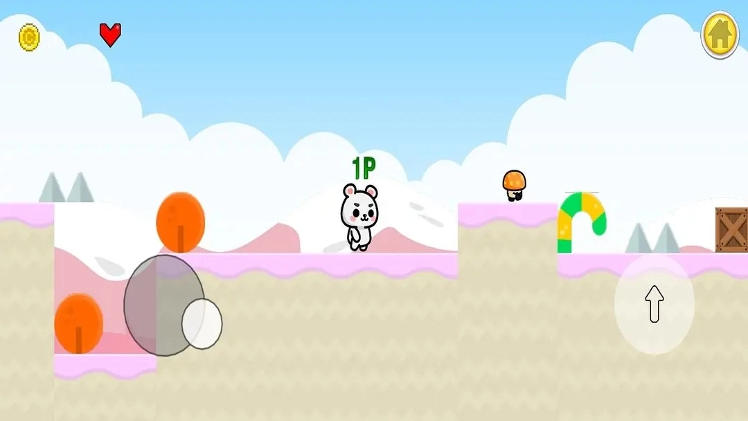 1. 玩家在游戏里操控一个拟人化的熊角色,借助虚拟摇杆或触控按钮来控制左右移动,达成在各类地形上的前进目标。