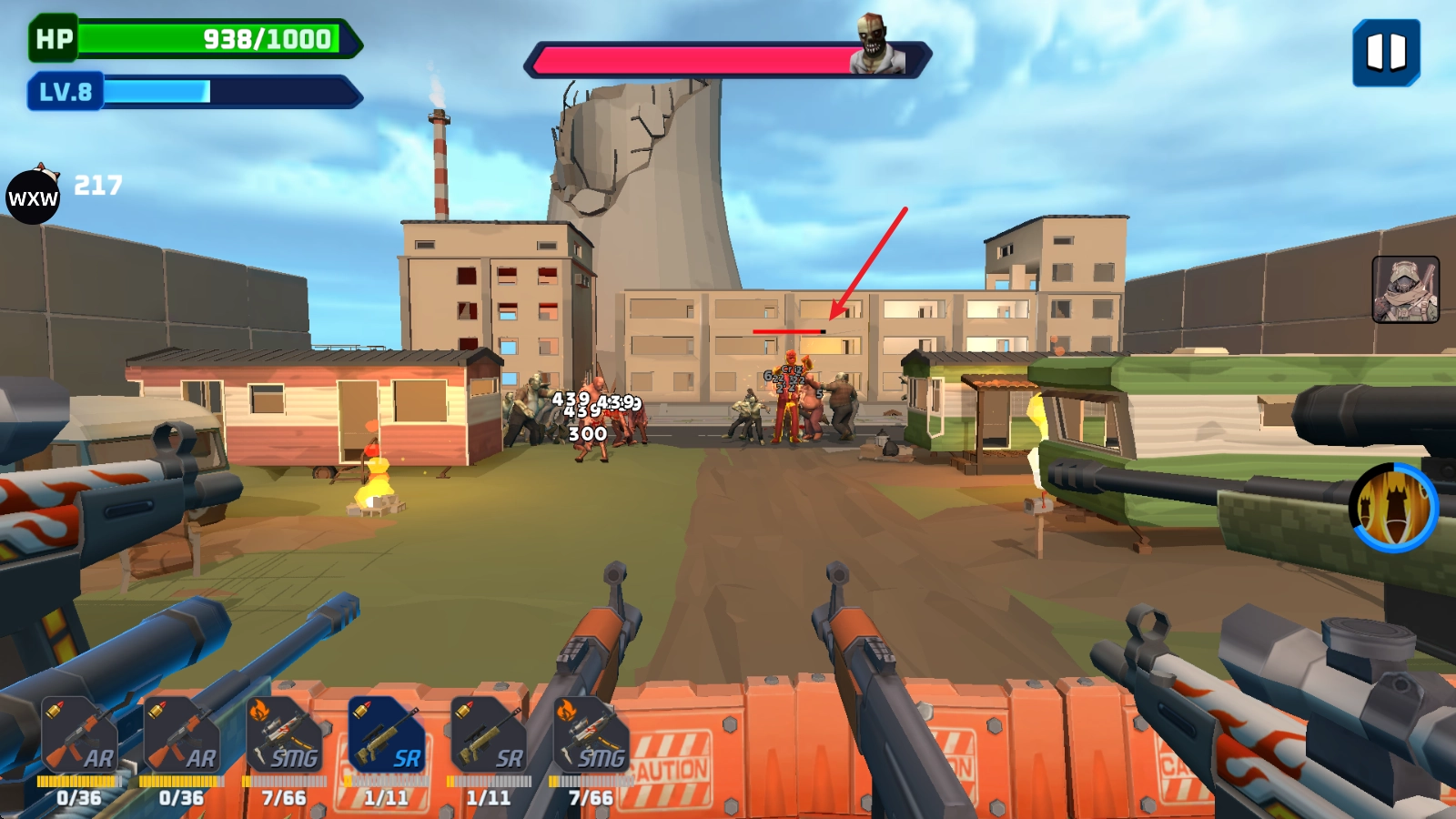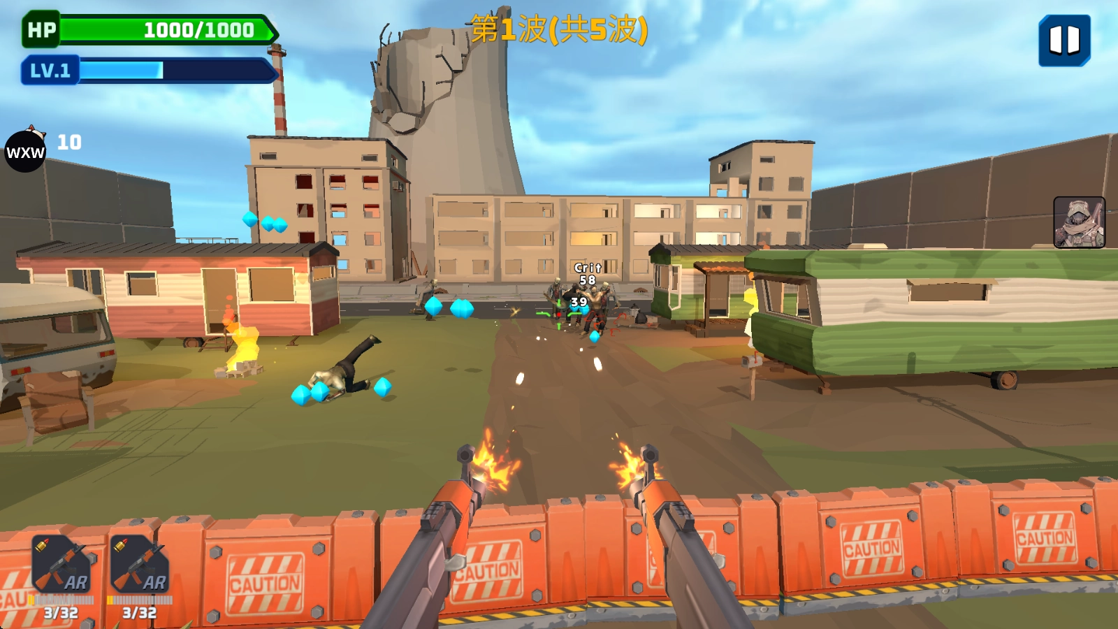 3、击杀僵尸会掉落蓝色的经验,可以提升等级。