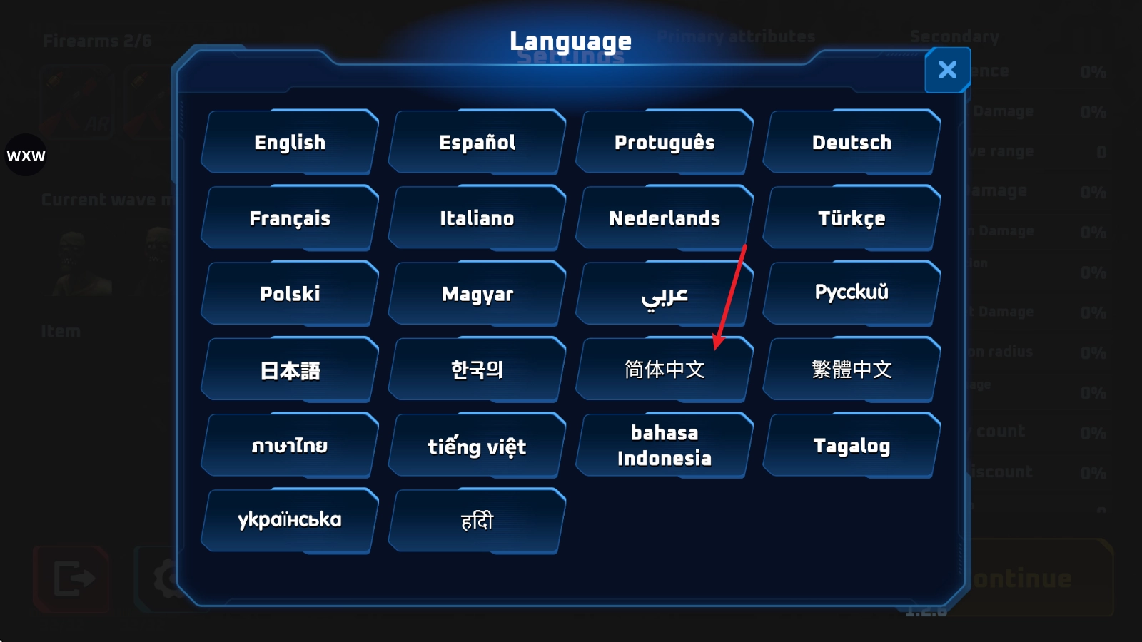 3、找到简体中文后点击,确认后重新启动游戏即可。