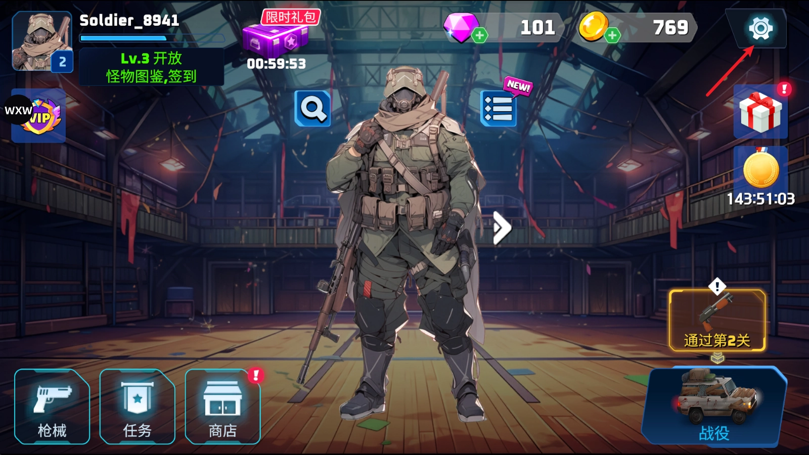 1、在游戏中,点击右上角的齿轮进入设置界面。