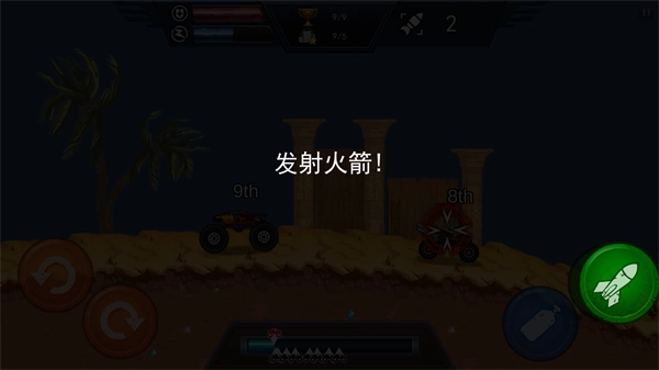 1、朝前方对手发射导弹使其失控,或是在赛道布设地雷让后方追兵猝不及防;