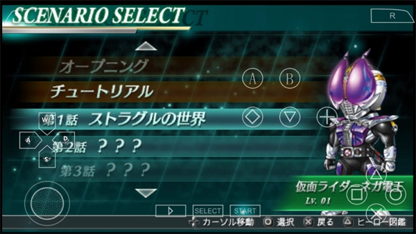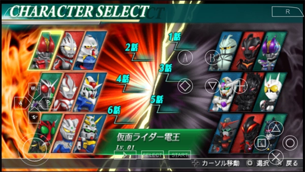 ○:跳跃(奥特曼系列角色按L+○可触发高跳;高达系列角色连按两次○能使用二段跳。奥特曼系在高跳后、高达系在二段跳后,以及两者普通跳跃后,都可以继续按×进行空中冲刺;而来打系角色无法使用空中冲刺)。