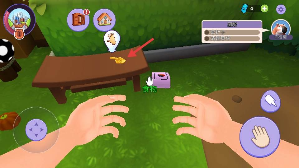 1、基础照料:把蔬果拖到食盆里投喂,点击澡盆就能触发清洁,转动玩具可产生互动,长按可查看状态详情。