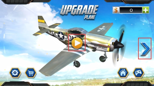 1、我们可以点击右侧的箭头来切换飞机类型,之后点击飞机上的【播放】按钮,挑选出自己心仪的飞机,开启这场竞速挑战吧。