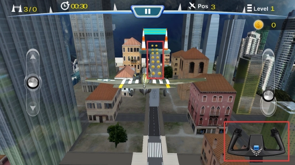2、飞机竞速操控:借助虚拟按键来调节飞机的速度、转向以及俯仰,在赛道里巧妙穿行,躲开障碍物,赶超其他对手,奋力奔向终点。