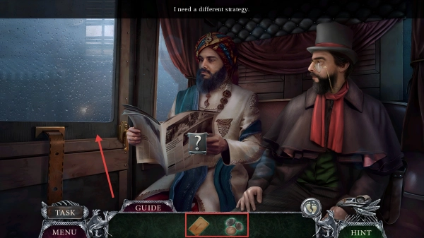 1、处于车厢场景时,我们和对面的人物完成互动后,就能拿到下方的【信件】与【硬币】,之后点击车门便可前往外界场景。
