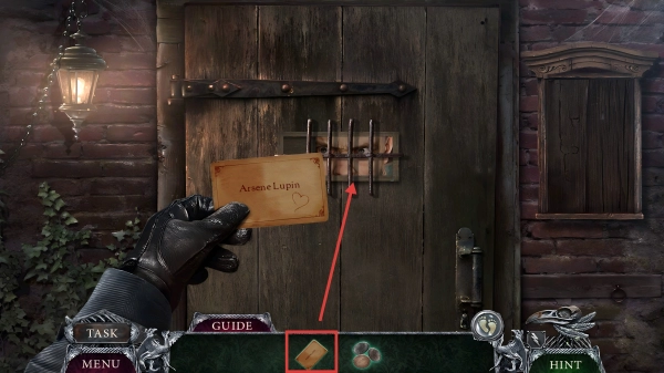 2、行至木门所在位置,拖动下方的【信件】,把它递给门内的人,即可获得进入的许可。