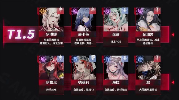 T1.5角色:伊琳娜、赫卡蒂、温蒂、帕加茜、伊格尼、德莫莉、海拉、澈