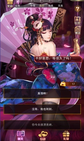 2、聊天功能需要你开动脑筋,根据对女神类型的想象来回答她的问题,评论得分越高,提升的好感度就越多。和女神聊天要消耗亲密卡,亲密卡用完了记得去商城补充哦!