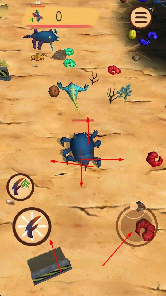 3、游戏时,操控怪物在场景里移动,通过攻击其他怪物来获取DNA,以此增强自身的能力。