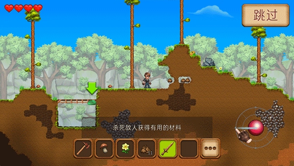 3、点击屏幕并按住即可使用该物品,借助锄头能砍伐树木获取木材,还能挖掘出有用的物品。