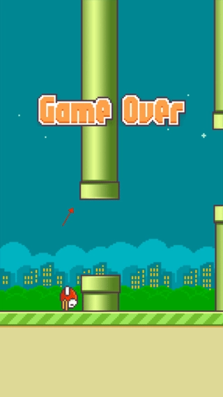 4、控制一只小鸟躲避绿色管道,飞行得越平稳,穿过的管道数量就越多,最终获得的分数也会越高。