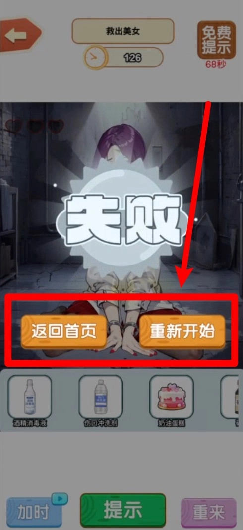 3.失败提示:若因选择错误而导致挑战失败,界面会弹出相应提示,此时可直接选择返回首页或重新开始,以便快速再次发起挑战。
