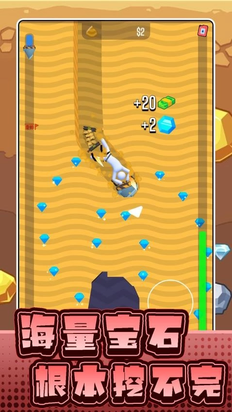 2、全新的游戏模式支持自由闯关,还能开启更多挑战,不断挖掘钻石、收集道具来助力完成挖掘任务,玩法丰富多样!