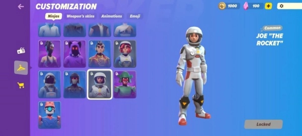2、充满搞怪趣味且种类丰富的武器道具,从平底锅、苦无到武士刀一应俱全,为你带来爆笑与刺激交织的战斗体验。