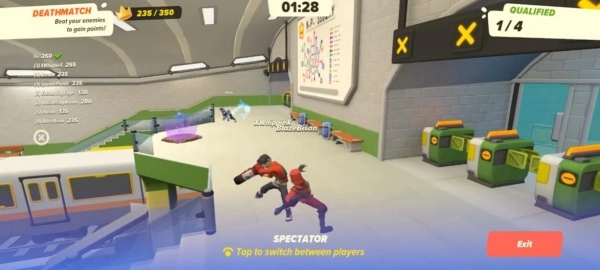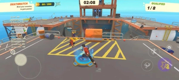 1、借助滑动、跳跃、攀爬等动作在地图里自由移动,并且伺机战胜对手。