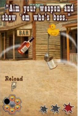 玩家能够通过点击屏幕和牛仔角色进行互动,从而触发角色唱歌、弹奏班卓琴或者口琴之类的动作,角色还会用夸张的西部风格来模仿玩家的语音,并且做出滑稽有趣的反应。