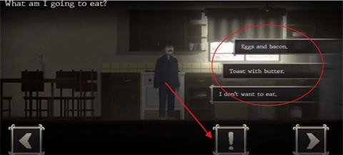 2. 接下来你会发现,当自己进入新场景后,就能抵达厨房,点击感叹号,就可以选择食物了。