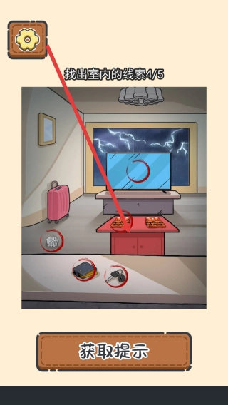 3、寻找室内的线索,点击图里那些看起来有异常的地方,除了已经找到的线索,还要留意窗外天气的变化。