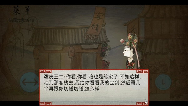泼皮王二:你瞧瞧,你瞧瞧,咱也是懂功夫的练家子,要不这样,咱们去那客栈里,我给你亮亮我的宝剑,然后哥几个再跟你过过招、切磋切磋,你觉得怎么样?