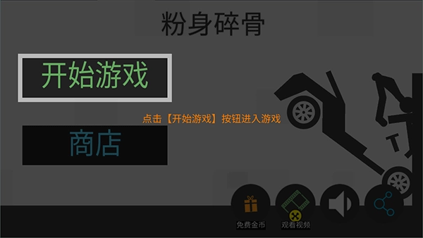 1、打开火柴人粉身碎骨中文版,点击开始游戏;