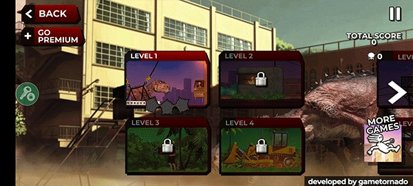 1、游戏模式简单直接。进入游戏后,你将化身一头觉醒的霸王龙,一路奔袭至关卡终点。