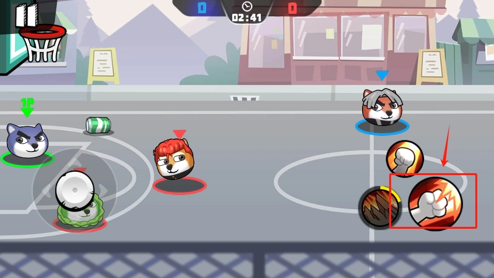 - 篮球操作:靠近篮球时自动拾取,点击右侧“投篮”按键即可投篮,无需精准瞄准,恶搞画风下连投篮偏差都充满笑点;部分角色持有特殊武器(如木棒、道具球),点击“武器”按键可投掷攻击,兼顾打人与干扰投篮双重效果;