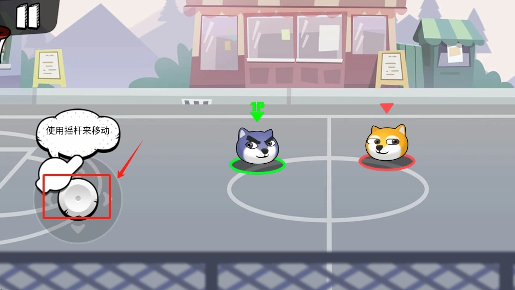 2、使用左下方的虚拟摇杆控制角色移动,靠近篮球。