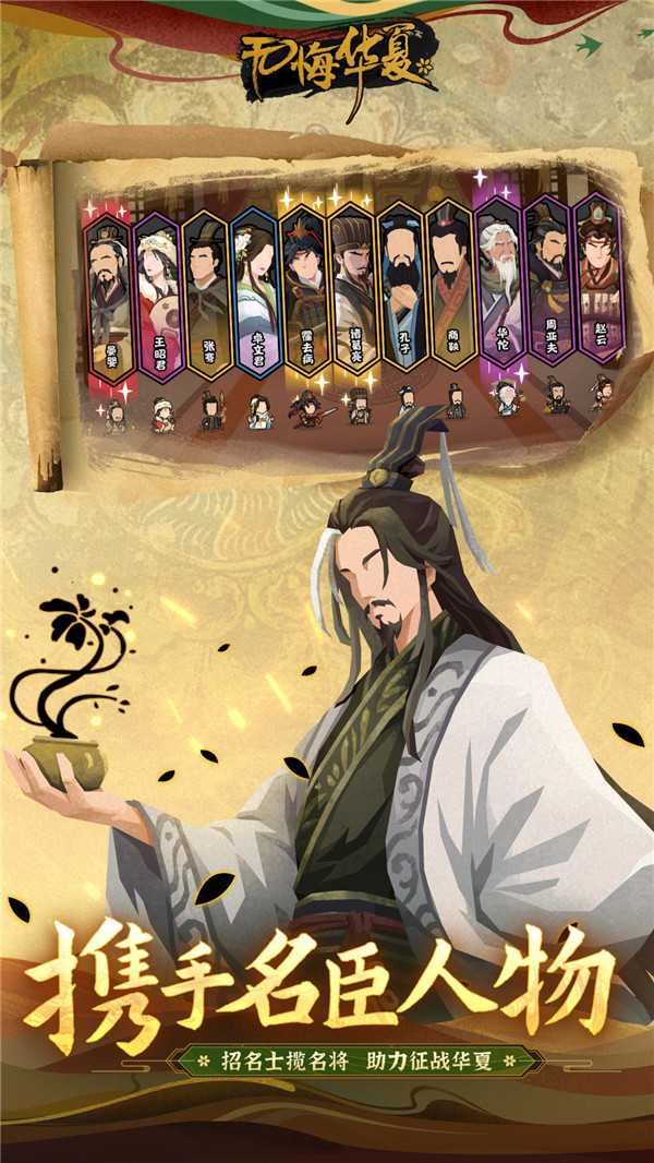 无悔华夏测试服是一款以华夏历史长卷为背景的轻策略模拟经营手游,在这里你将亲历多个时代,执掌乾坤,化身一国君主,广纳名臣良将,推行治国方略,在发展与权衡中壮大国力,在这幅徐徐展开的文明绘卷中,厉兵秣马纵横捭阖,享受超棒的放置战斗,喜欢的朋友可以来本站下载