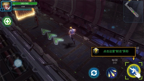 3、按住下方的虚拟按键来操控角色移动,借此熟悉操作的手感。在移动的过程里,要留意躲避怪物的攻击,与此同时还要找寻合适的射击位置。