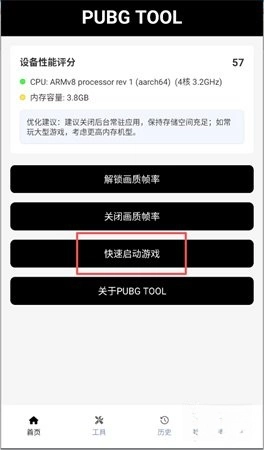 1、打开PUBG Tool画质助手,点击【解锁画质帧率】。