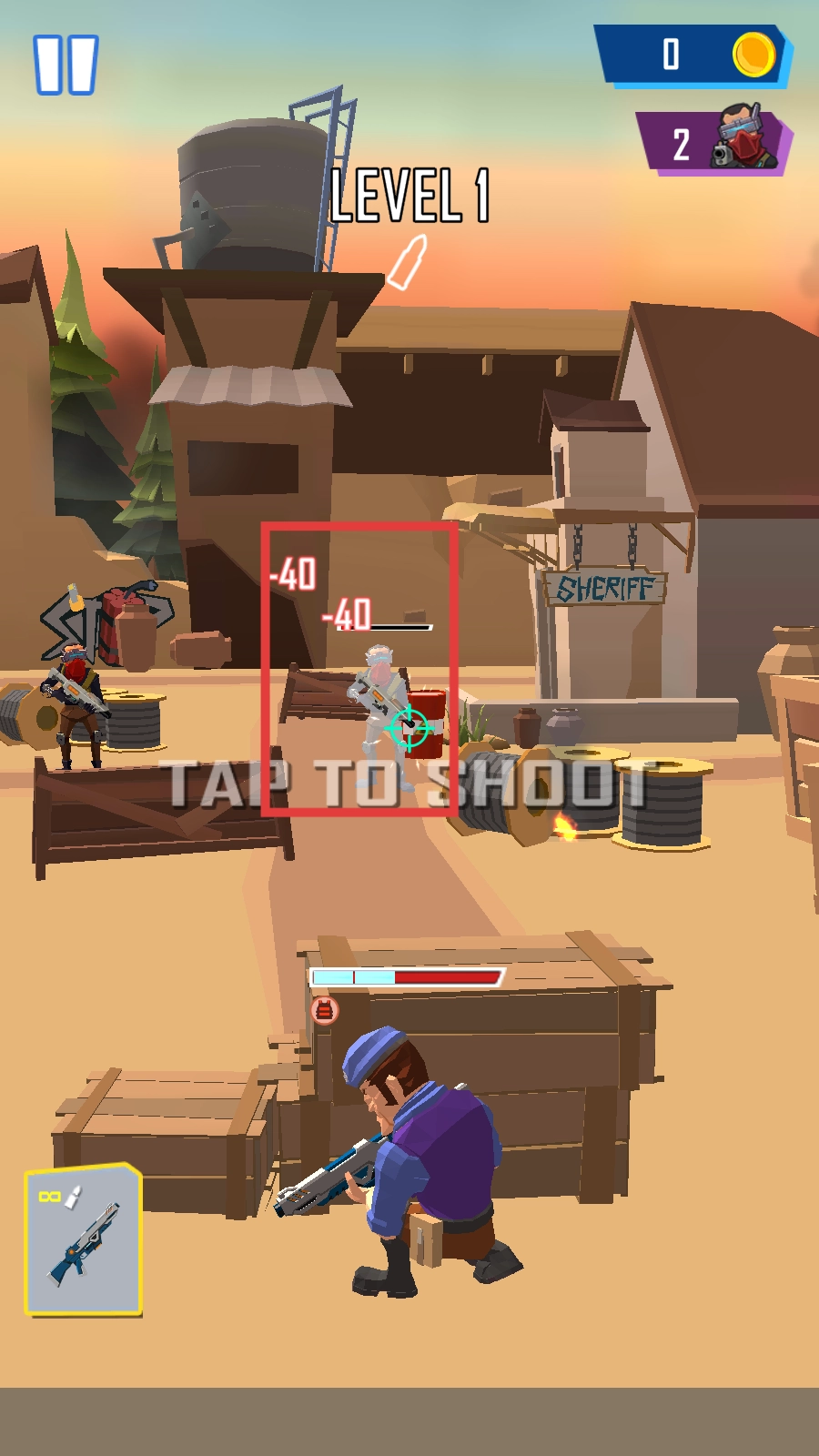 1、进入游戏界面后,点击屏幕就能开启紧张刺激的射击冒险之旅啦。