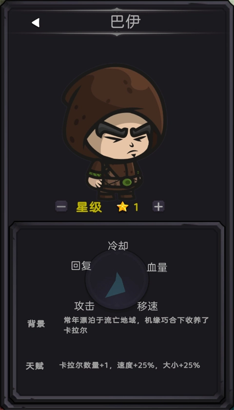天赋:卡拉尔数量增加1个,移动速度提升25%,体型增大25%。