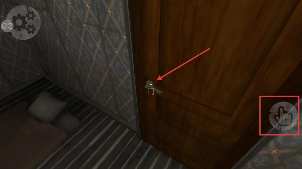 1、在房间内发现木门把手后,点击右侧的手掌按键,尝试开启这扇门,去探索新的区域。