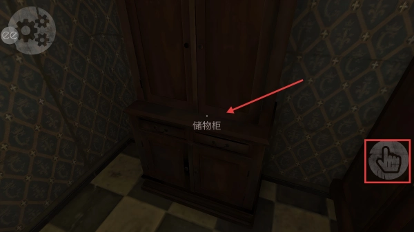 2、找到带有【储物柜】标识的家具,点击其右侧的手掌按键就能触发交互功能,我们需要仔细搜寻每一个细节,不能错过任何可能性。