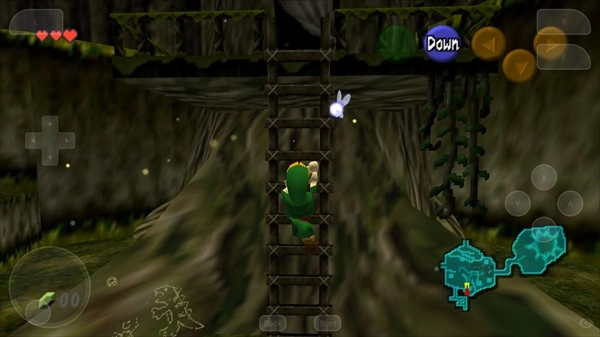 首先前往地图1F的区域1,这里有三株Deku Baba,不过它们已经脱离硬直状态了,得小心应对。要是最后一击能命中它的头部,会额外掉落消耗道具Deku Nut(德库坚果),这个道具之后有重要用途,建议尽量多收集一些。另外,Deku Nut和Deku Stick也能在商店里买到。如果血量不足,可以砍些草来补充。区域中间的大蜘蛛网暂时不用理会,顺着左边的楼梯或者中间的藤蔓爬到二楼就行,两条路都可以,走楼梯不过是多绕点路罢了。