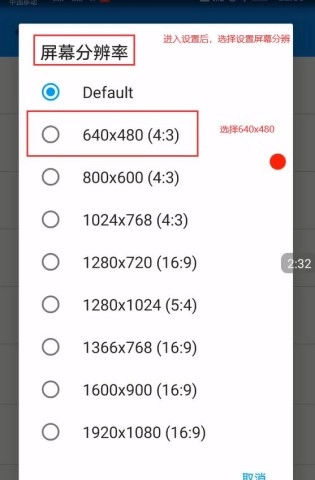 1、进入设置界面后,挑选640x480(4:3)这个屏幕分辨率选项。